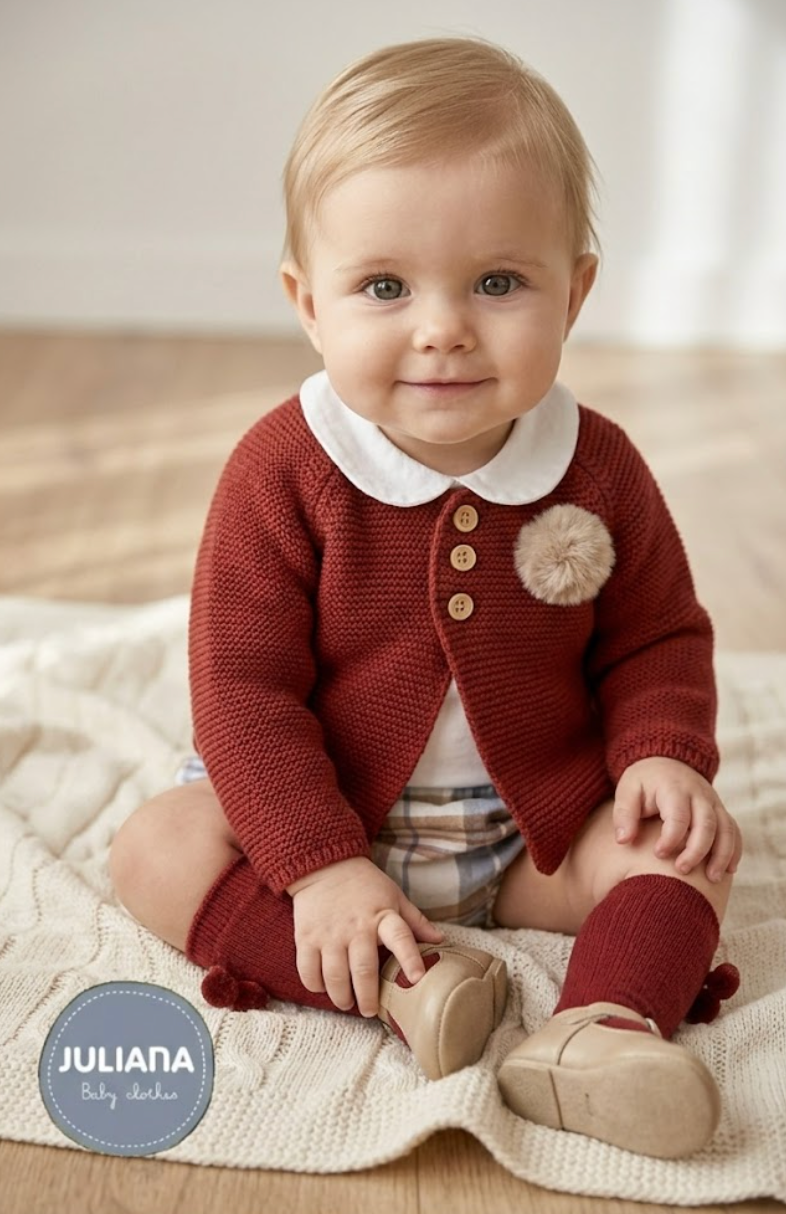 CONJUNTO CHAQUETA NIÑO CUADROS POM POM